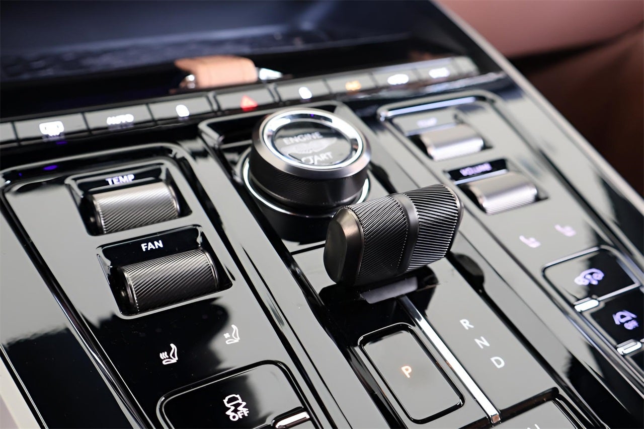 - Radio: Aston Martin Premium Audio System -inc: 800-watt, 10.25" touchscreen central display, wired Android Auto, AM/FM/DAB, Apple CarPlay Ultra, 14 speakers, Bluetooth® mobile phone connectivity w/audio streaming, natural voice control, online connected car system w/Aston Martin companion app, online satellite navigation system, SiriusXM satellite radio and 4 USB-C ports